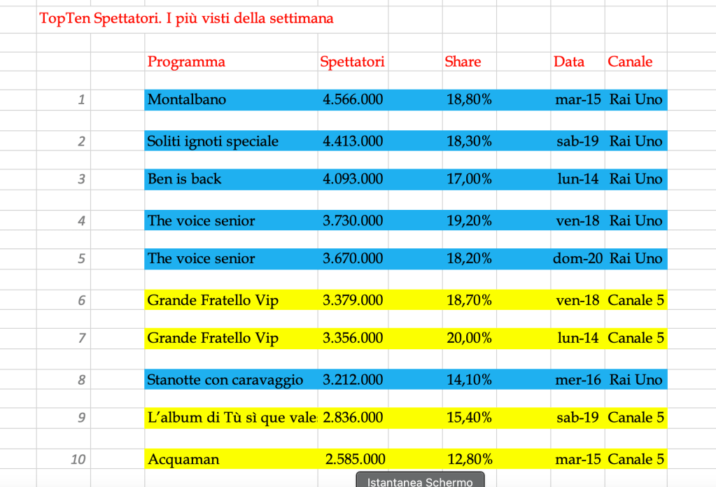 Per quanto riguarda il Day Time È sempre mezzogiorno conferma il suo trend positivo del 14%.