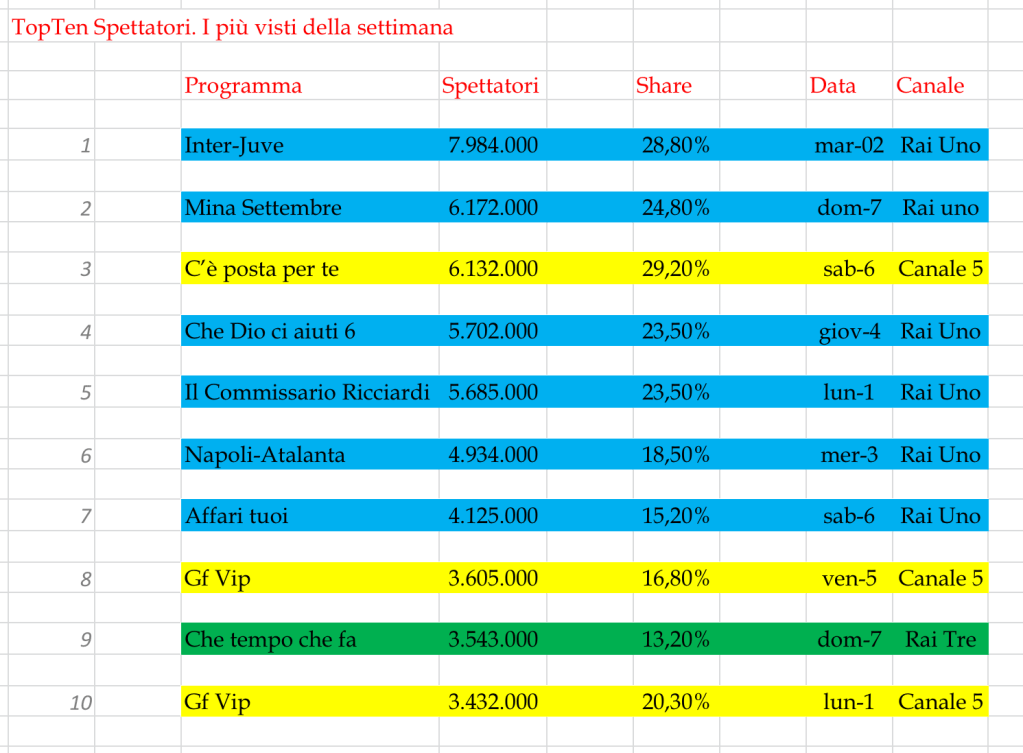 Da tutto ciò evinciamo una netta preponderanza, come spesso accade, della Rai sulla Tv concorrente.