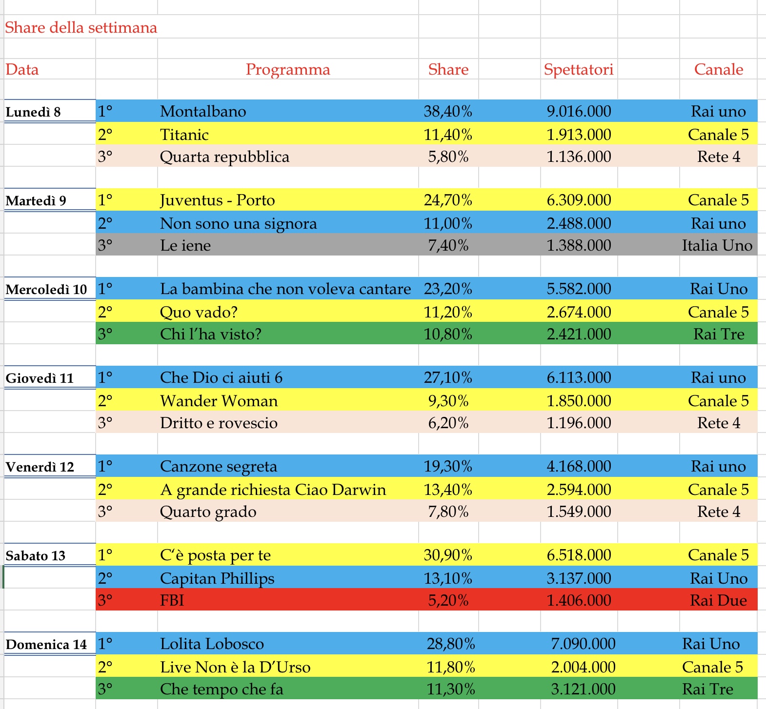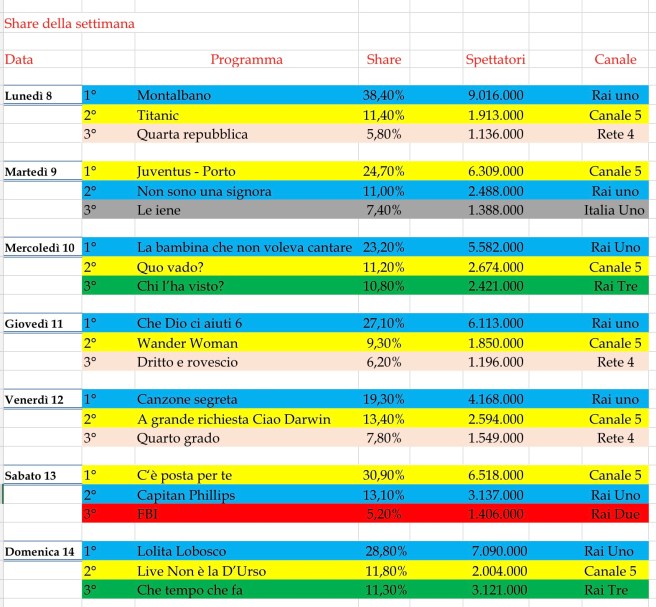 Per quanto riguarda la gara a colpi di share, notiamo percentuali davvero molto alte, non semplici ormai da raggiungere.