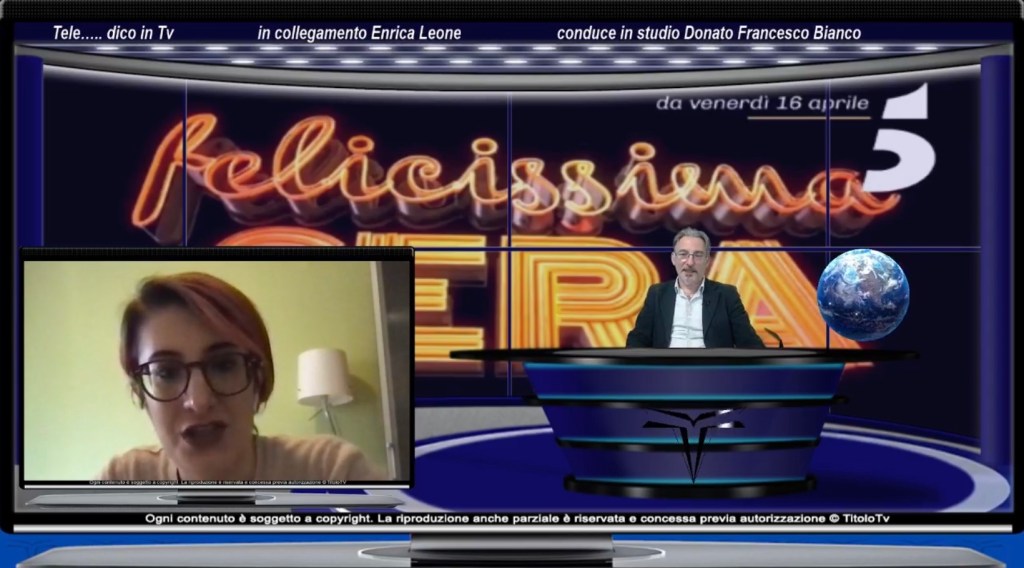Questa settimana, a Tele dico in Tv, Enrica Leone e Donato Francesco Bianco parleranno de La compagnia del cigno seconda stagione, la quale, per quanto riguarda gli ascolti, non se la sta cavando troppo bene. Per quale motivo? Nella seconda parte, invece, parleremo di Felicissima sera il nuovo programma di intrattenimento di Canale 5 con protagonisti Pio e Amedeo. Al termine la Top Ten. Buona visione.