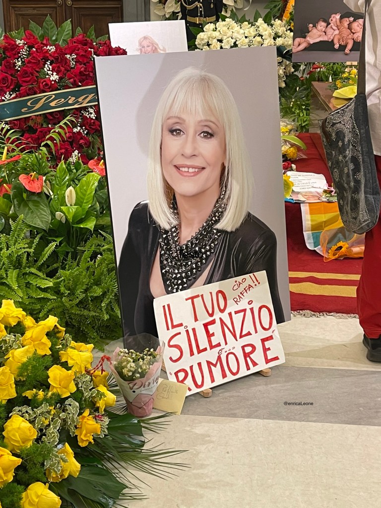 Impossibile non soffermarsi sul suo volto nella foto che è stata posizionata in Basilica, circondata da tanti bambini. Viene spontaneo un mesto sorriso e qualche lacrima scende incontrollata, perché non è giusto, si potrebbe dire, non eravamo preparati, non potevamo immaginare che stesse male. Eravamo tutti abituati a lunghe assenze dalla Tv, e questa volta davamo la colpa alla pandemia, perché lei su Rai Tre ci stava per tornate con la terza edizione di A raccontare comincia tu, ma l’emergenza sanitaria l’ha costretta a fermarsi, perché non si sentiva sicura. Così, il suo silenzio ci è parso nomale, abituale. E invece le cose erano ben diverse, ma ancora una volta Raffaella ha pensato ai suoi amici più cari e alla gente comune, scegliendo di non mostrarsi, per lasciare di lei un ricordo migliore.