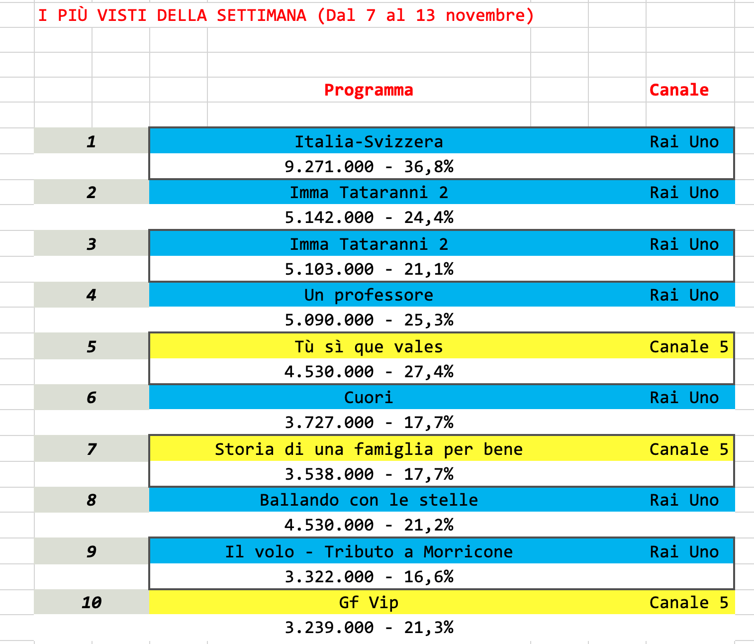 Il primo posto, però, è per la partita della nazionale Italia – Svizzera